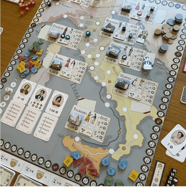 Explorez l'Italie du XVIIIe siècle dans cet Eurogame de construction manuelle et de gestion des ressources.