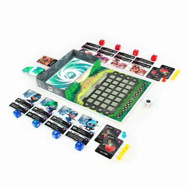 "Tiny Ninjas: Heroes"" est le deuxième jeu de l'univers des Tiny Ninjas et introduit plus de stratégie avec une arène à grille 4x7. Les joueurs commandent un clan de 5 ninjas, dont un HÉROS sélectionné. Les dés sont utilisés pour suivre le positionnement et la santé de chaque ninja. Les joueurs acquièrent des objets, des boucliers et de l'énergie pour exécuter des capacités spéciales. Éliminez votre HERO adverse pour revendiquer la victoire.