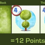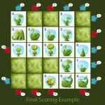 Les nombres sur les tuiles sont la valeur en point et la taille du Topiaire (plus la valeur est élevée, plus le topiaire est grand). Vous pouvez aussi recevoir des points bonus quand le même visiteur peut voir des topiaires de la même série, mais aussi pour les tuiles que vous avez en main à la fin de la partie.