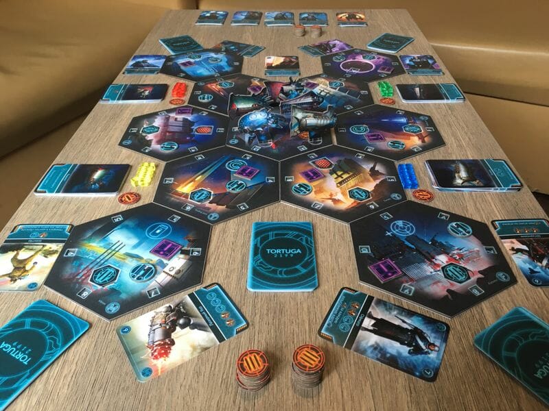 Tortuga 2199 est un jeu de construction de deck (deck builder), d'exploration et de contrôle de zone pour 2 à 4 joueurs.