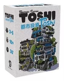 Le maire de Kanashī est à la recherche du ou de la designer urbain·e capable de verdir le nouveau quartier ! Toshi Tōshi est un jeu de plis original : les personnes perdantes du pli posent des jetons de verdissement sur une grille de bâtiments, tandis que la personne gagnante choisit quels bâtiments seront ajoutés à la grille.