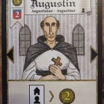 Un an après, les 3 auteurs de Troyes remettent le couvert pour un nouveau jeu de stratégie très dynamique qui vous offrira des challenges à chaque fois différents. Comme Troyes, Tournay se déroule dans une ambiance moyenâgeuse richement illustrée par Alexandre Roche. Les comparaisons s’arrêtent là car Tournay vous offrira une nouvelle expérience ludique dans un temps de jeu plus court grâce à des mécanismes originaux que vous prendrez du temps à tenter de dompter! Après avoir joué avec le hasard des tirages de dé dans Troyes, Tournay vous offre un maximum d’outils pour jouer avec le hasard de le pioche de cartes! En effet, Tournay est un jeu de cartes dans lequel les joueurs gèrent un quartier de la ville et ses habitants appartenant aux trois classes de la population. Les cartes du jeu sont classées par niveau (de I à III) et par couleur, de manière à former 9 pioches distinctes. Les joueurs disposent initialement de 2 habitants de chaque classe (des «meeples» sculptés pour l’occasion) qu’ils vont utiliser pour réaliser l’une des 5 actions disponibles comme piocher des cartes ou utiliser le pouvoir de leurs bâtiments. Dans le quartier de chaque joueur, les bâtiments permettent de gagner de l’argent, d’être plus efficace dans la pioche de cartes ou encore, de recruter de nouveaux habitants. Les cartes personnages permettent d’optimiser l’usage des bâtiments s’ils sont correctement placés: les joueurs doivent donc tenter de créer des combinaisons de cartes les plus efficaces possibles. Finalement, les bâtiments de prestige construits vous donnent des précieux Points de Prestige, en fonction de votre développement. Mais attention à vos adversaires, car ces mêmes bâtiment leur profiteront également! Notez qu’une extension est intégrée à la boîte de base pour les joueurs confirmés souhaitant varier les plaisirs!