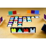 Dans la ville 77 , chaque joueur dispose d'une main de tuiles, chaque tuile montrant l'un des sept styles de maison dans l'une des sept couleurs/motifs. (La couleur/le motif d'une tuile apparaît également sur son verso.) Le jeu comporte 49 tuiles au total, une de chaque combinaison possible. Chaque joueur commence avec une main de tuiles aléatoires. Le premier joueur place une tuile dans le coin supérieur gauche d'un carré imaginaire 7x7, puis à chaque tour suivant, un joueur ajoute une tuile à une ligne ou une colonne de ce carré tant que cette tuile est adjacente à au moins une autre tuile et la couleur/style maison n'est pas déjà présente dans cette ligne et cette colonne. Après avoir joué une tuile, un joueur peut choisir de piocher ou non une nouvelle tuile. Une fois que vous avez réduit la taille de votre main, vous ne pouvez plus l'augmenter. Si vous ne pouvez pas jouer pendant un tour, vous êtes hors jeu, et une fois que tout le monde est éliminé, celui qui a le moins de tuiles en main – ou qui a joué le dernier en cas d'égalité – gagne. Si vous jouez votre dernière tuile, vous gagnez, mais si vous ne piochez pas de nouvelles tuiles, vous risquez de vous retrouver dans l'impossibilité de jouer !