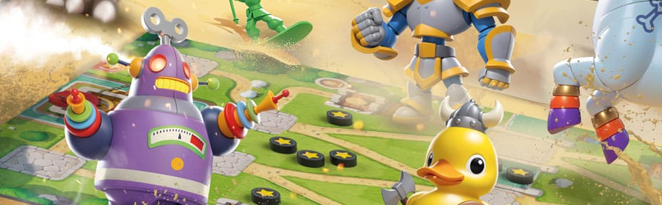 Préparez-vous à la guerre... de jouets ! Des dinosaures, licornes, robots et pirates s’affrontent sur terre, mer, nuages et même dans l’espace. Votre mission ? Capturez le quartier général ennemi ou prenez le contrôle de plus de territoires que votre adversaire.