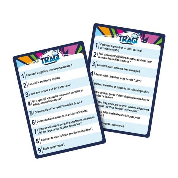 TRAQ - Tu réponds à quoi ? est un jeu de questions dans lequel il n'y a besoin d'aucune connaissance. Vous savez dire votre prénom et donner la couleur du cheval blanc d'Henri IV ? Alors vous avez tout ce qu'il faut pour jouer !