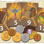 Au bout des 5 tours de jeu, on procède au décompte des tuiles trésors, positives et négatives, ainsi que les tuiles parchemins, et celui qui a le plus de points a gagné la partie. Le jeu recèle aussi d’une variante 2 joueurs.