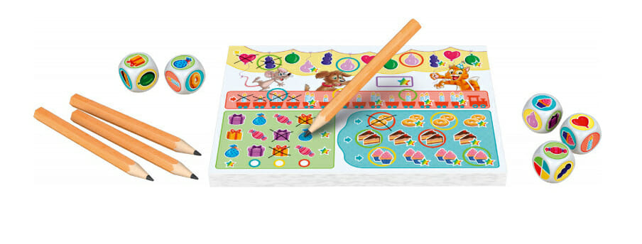 La fête est complètement folle : ballons, bougies, cadeaux et beaucoup de gâteaux. Il y'en aura pour tout le monde. Celui qui coche intelligemment les symboles obtenus sur les dés dégote beaucoup de points de victoire et de tours supplémentaires. Mais attention ! Tous les dés qu'il n'utilise pas sont pour les autres joueurs. Tout le monde est donc de la partie et personne ne doit attendre longtemps !