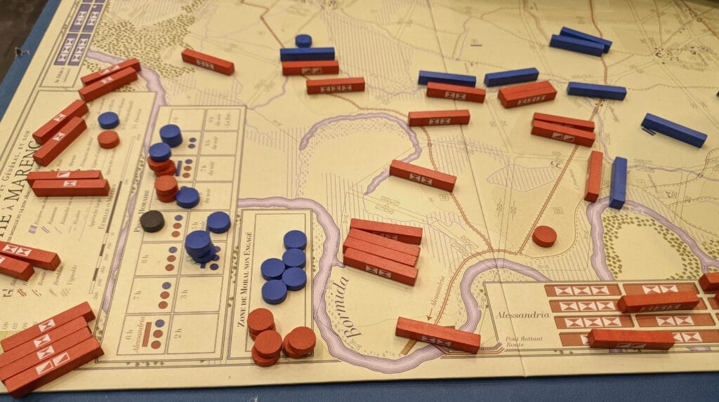 Ce jeu recrée cette bataille dramatique. Un joueur prend le rôle de Bonaparte dont les troupes sont dispersées au début, tandis que l'autre attaque avec les Autrichiens. Il doit vaincre les Français avant qu'ils ne puissent riposter avec leurs renforts. Triomphe à Marengo se joue rapidement. S'écartant de presque toutes les conventions des wargames, il apporte l'aspect de la guerre linéaire du 19ème siècle sur la table.