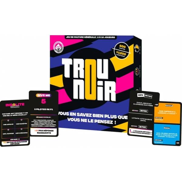 "Trou Noir c'est un jeu de culture générale fun et insolite à jouer en solo ou en équipe avec ses proches dans lequel les joueurs vont s’affronter pour révéler le ou les plus inculte(s) du groupe !"