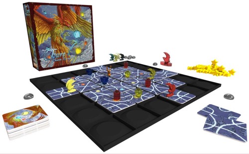 Pour cette édition spéciale créée à l'occasion des 10 ans du jeu, Tsuro : Phoenix Rising propose aux joueurs d'incarner des phénix dont le but est de réussir en premier à constituer une constellation composée de 7 étoiles.