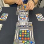 Continuez à jouer à tour de rôle dans le sens des aiguilles d'une montre jusqu'à ce qu'un joueur n'ait plus de tuiles figures devant lui, qu'un joueur ait dix jetons de score sur son plateau ou qu'un joueur vide la réserve de jetons de score en prenant le dernier jeton.