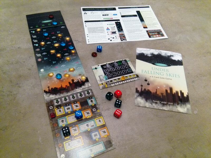 Les cartes forment une piste avec un vaisseau-mère extraterrestre accompagné d'une armée de petits vaisseaux en haut et d'une base souterraine en bas.