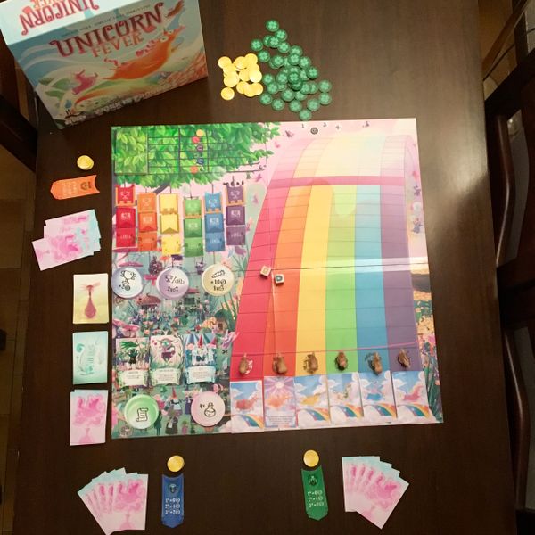 Unicorn Fever est un jeu de pari où des licornes involontaires et leur désir irréfléchi de courir sur des arcs-en-ciel sont exploités par des citoyens sans scrupules du royaume des fées, pour le profit... et la gloire !