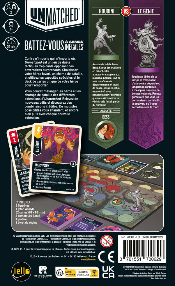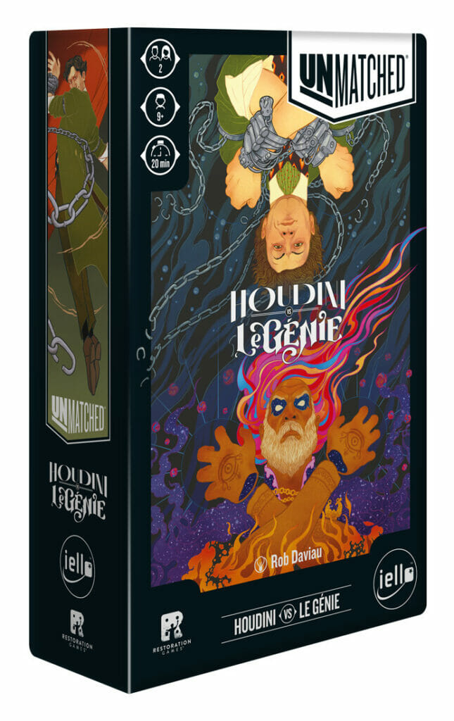 Houdini, le Roi de l’évasion, contre Le Génie de la lampe : c’est l’incroyable affiche de cette nouvelle boîte Unmatched qui permet de s’essayer à de nouveaux styles de combat, aussi différents que captivants à jouer.