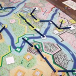 This game isn't a true 18xx game, in the sense that it's officially sanctioned by Francis Tresham. However, it shares a good number of characteristics with the 18xx series of games, while still being different enough to be a different game. The game is about diverting water from rivers into irrigation channels and supplying the life-giving water to sections of land. In 18xx, there are private companies; in Ur, there are independent nations. In 18xx, there are companies with shareholders and a majority-controlling president; in Ur, there are countries with landowners and a majority-controlling King. Once a Kingdom has enough land purchased in it, it begins to build water infrastructure in the form of reservoirs and pumps. These structures draw the water away from the rivers into irrigation channels which are drawn straight on the board. Like 18xx, the technology increases as the game progresses, making channel diggers obsolete and bringing out more efficient waterworks. When a section of land is irrigated, the owner earns a small degree income and the kingdom it's located in earns a much larger income, which can then be given to the landowners or kept in the Kingdom's coffers for future upgrades. The game is finally over when all the incoming water is used, forcing the southern tribes to invade, or a kingdom cannot fulfill it's obligation to buy more ditch-diggers and falls into revolution. The player with the largest personal holdings (land and money) is the victor.
