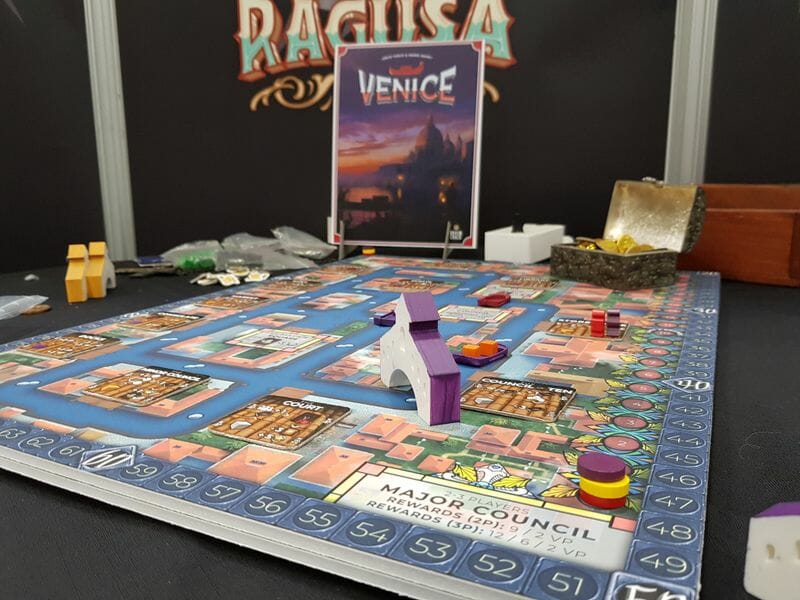 Situé au 16ème siècle, Venise permet aux joueurs de jouer le rôle de riches et influents marchands qui montent et descendent en gondoles les canaux de la ville, forment leurs assistants, remplissent des contrats et exercent leur influence pour obtenir le pouvoir politique. Mais les affaires sont tout sauf ordinaires... En négociant des contrats et en flirtant avec la criminalité, les commerçants doivent éviter d'éveiller les soupçons de l'Inquisition vénitienne, de peur de se faire arrêter et de voir leurs commerces fermés.