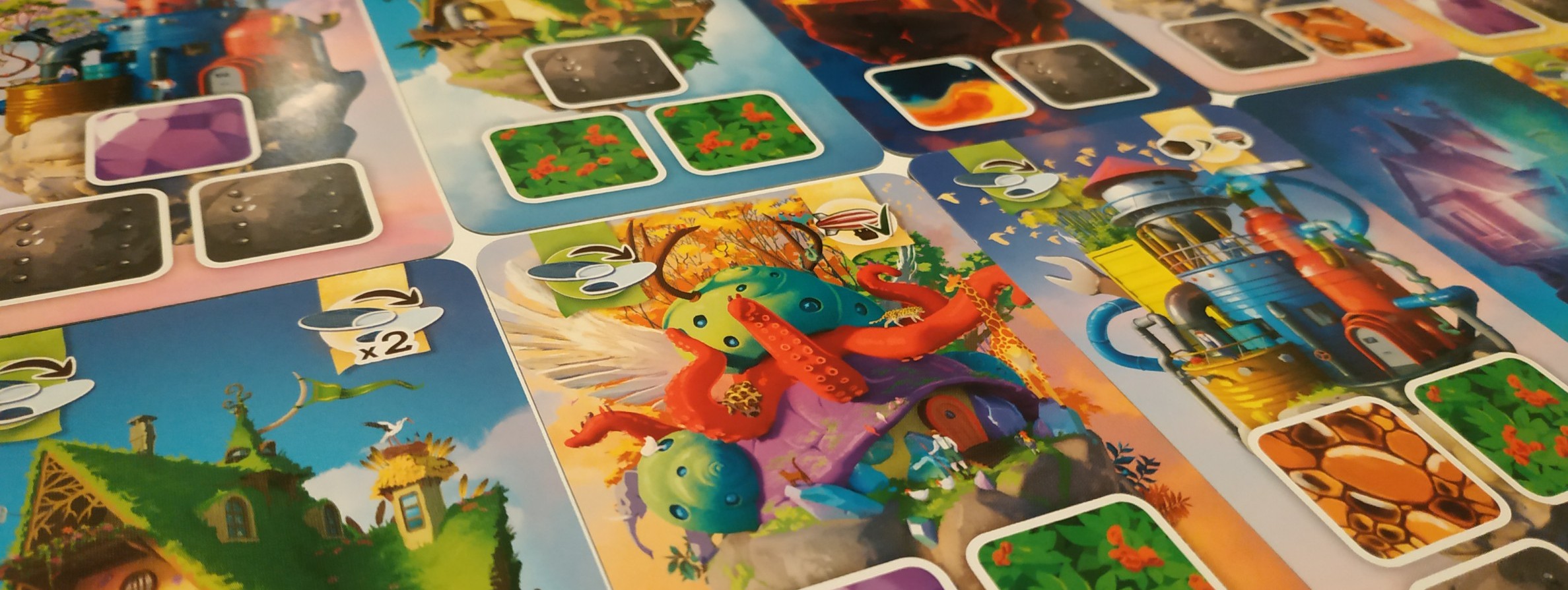 Bâtisseur Céleste… En voilà un projet qui fait rêver, tout comme la boîte de Welkin, avec ses couleurs chatoyantes et ses illustrations chimériques. Si