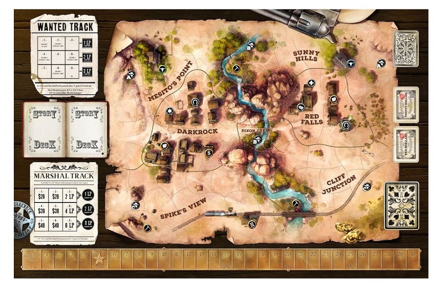 Le jeu offre une immense liberté au joueur, soutenue par un magnifique matériel incluant des figurines, des cartes de poker qui servent les différentes actions du jeu, des pépites, un présentoir du General Store plus vrai que nature et plus encore !
