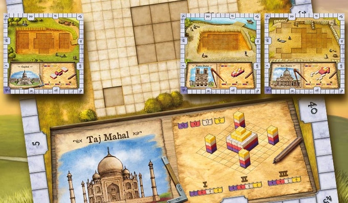 Dans World Monuments, vous et vos collègues joueurs choisirez l'un des quatre bâtiments et commencerez à le construire tous ensemble à partir du sol : Le Capitole à Washington, la cathédrale Notre-Dame de Paris, la basilique San Pietro à Rome, ou le mausolée Taj Mahal à Agra. Celui qui aura le plus de points l'emportera.