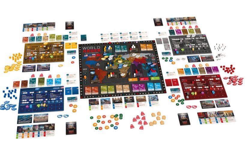 Le jeu de société World Order simule les relations internationales modernes, les joueurs prenant le contrôle de l'une des quatre puissances mondiales dominantes des années 2010 : les États-Unis d'Amérique, la République populaire de Chine, la Fédération de Russie et l'Union européenne. Utilisez votre pouvoir diplomatique, votre puissance économique et votre force militaire pour étendre votre influence à travers le monde.