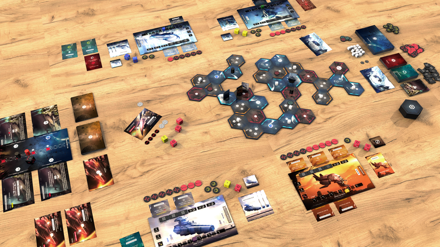 "Le plateau modulaire de tuiles hexagonales, révélé au fur et à mesure que le jeu progresse, ainsi que les ennemis, alliés, explorations et événements aléatoires, créent une expérience toujours renouvelée.