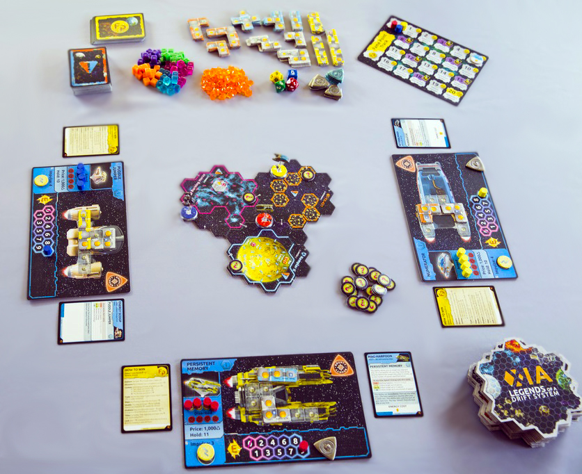 Xia : Legends of a Drift System est un jeu pour 3 à 5 joueurs dans lequel les joueurs vont incarner le capitaine d'un vaisseau spatial avec son équipage, à la recherche de la richesse et de la gloire éternelle.