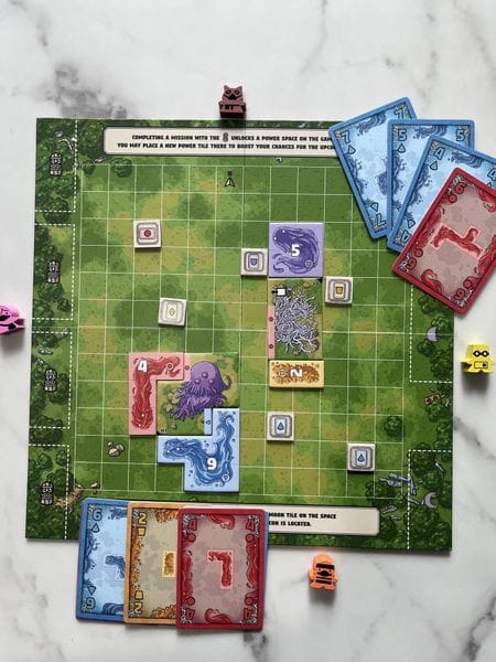Chaque mission vous met au défi d'entourer les tuiles Mission avec vos tuiles Esprit en jouant une série de plis. Chaque configuration est unique, avec sa propre carte, ses récompenses (parfois cachées) et ses contraintes de placement. Une planification minutieuse et un travail d'équipe sont essentiels si vous espérez progresser dans le royaume.