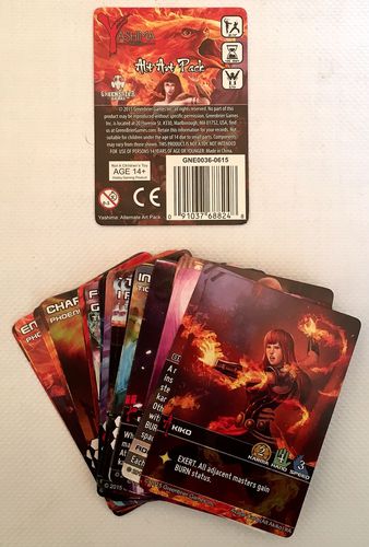 Alternate Art Pack : Ces cartes spéciales, en édition limitée, ont une illustration alternatives et peuvent être utilisées pour remplacer les versions originales dans le jeu de base de Yashima : Legend of the Kami Masters.