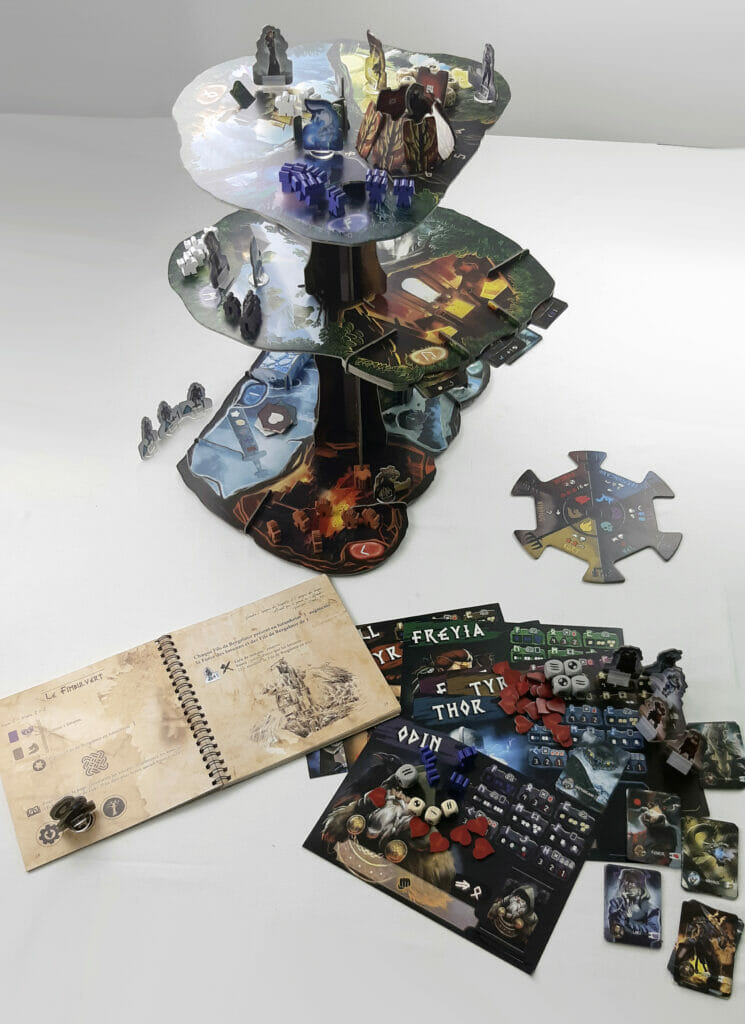 Pour empêcher les forces du mal de dévaster les neuf mondes et de détruire Yggdrasil, chaque joueur prend l'un des sept dieux nordiques, 5 à 9 points de vie (selon le nombre de joueurs) et un jeu de cartes montrant les six ennemis qui attaquent les neuf mondes ; vous mélangez ces cartes ennemies et vous les placez à côté de vous. Ces neuf mondes sont représentés sur un plateau de jeu 3D à trois niveaux, avec des emplacements pour les cartes d'artefacts, les cartes de créatures, les pions de héros, les pions d'elfes, les pions anonymes, et plus. Chaque niveau du plateau représente trois mondes et le plateau du milieu tourne.