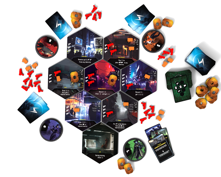 Pendant leur tour, les joueurs peuvent se déplacer dans les différents quartiers de la ville, en utilisant des capacités spécifiques à un endroit ou simplement en provoquant le chaos, en informant la police des activités de leurs adversaires ou en jouant des cartes qui tirent parti de leurs relations dans le monde souterrain pour déjouer les plans de leurs adversaires.