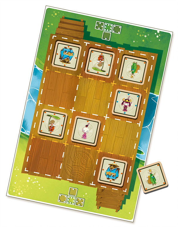 - Matériel : un plateau recto-verso, 24 pièces en bois, 36 autocollants, les règles du jeu.