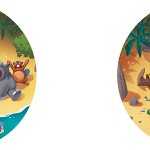 Chaque animal est représenté par une découpe en carton comportant un deuxième niveau surélevé permettant d'identifier la gueule de l'animal. Dans la bouche se trouvent une paire de chiffres - un vert et un rouge - indiquant la quantité de nourriture végétarienne et à base de viande dont l’animal a besoin pour être satisfait.