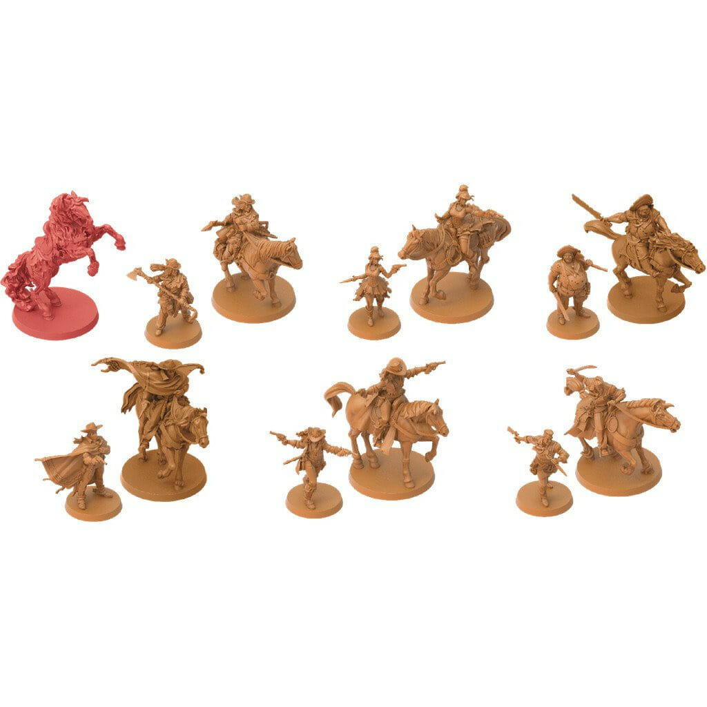 Chaque Survivant commence le jeu à cheval. Lorsqu'ils descendent de leur cheval pour entrer dans un bâtiment, leurs figurines sont échangées et ils laissent leur cheval solitaire derrière eux (en tant que jeton).