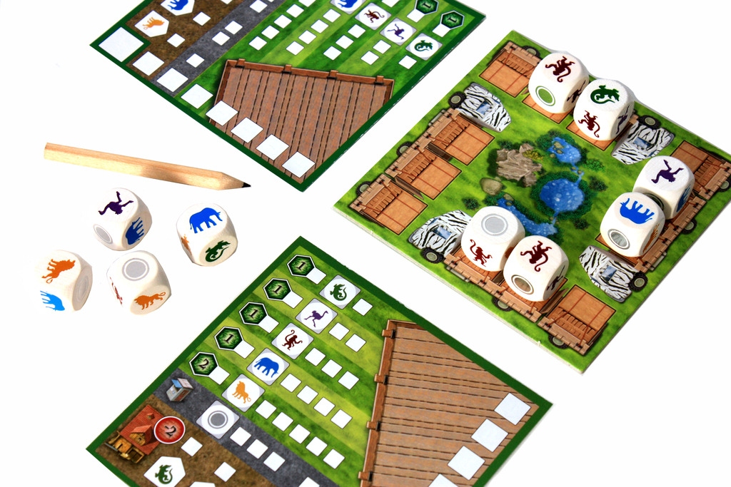 Créez votre propre zoo en quelques lancers de dés ! Vous devrez mettre la main sur les meilleurs animaux pour votre zoo tout en sachant quand vous arrêtez, car un animal de trop d’une espèce peut vous faire perdre votre avance. Chaque tour, vous devrez choisir entre rouler 2 dés et les placer sur un ou deux emplacements (camion de livraison) ou prendre des animaux c'est-à -dire récupérer tous les animaux contenus dans un camion de livraison. Si vous faites cela, vous passez ensuite pour le reste de la manche. Vous remplissez les enclos de votre zoo, chaque case animal coché rapportera 1 point. Mais si vous avez des animaux en trop cela vous fait perdre 2 points !