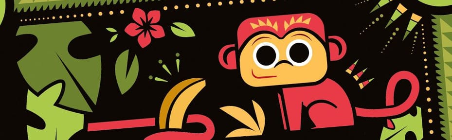 Jungo est la ré-édition de Hachi Train (2021) qui a déjà été ré-édité sous un autre thème avec le nom mignon de Nanatoridori en 2023. Exit les trains et les oiseaux, nous voilà désormais dans une jungle illustrée par Laura Michaud, qui travaille pour Cocktail depuis 2015 et dont on reconnaît la patte ici proche de Trio, l’As d’or tout public de l’an dernier.
