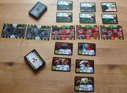Comme vous l’aurez probablement compris à la lecture de ce qui précède, j’ai été plutôt convaincu par les premières parties de ce jeu. On peut évidemment le comparer à cette référence absolue du jeu moderne à deux qu’est Neurohima Hex, et Convoi va avoir du mal à tenir la comparaison, il faut le reconnaître. Seulement deux factions, et il parait difficile, vu que le jeu a été construit autour de cette opposition, d’imaginer deux autres factions. Le jeu est moins tactique, moins technique, moins profond que Neuroshima. Pour autant, je l’aime beaucoup. Il apporte beaucoup de fraîcheur, il est rapide, fin, nerveux, et j’ai beaucoup apprécié les parties. Il faut aussi souligner qu’une fois qu’on sait jouer, le jeu se joue facilement en 30 minutes, ce qui le rend très facile à sortir en attendant que les autres joueurs arrivent pour lancer la soirée jeu.