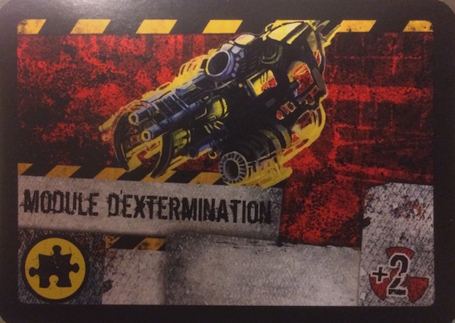Je vous laisse imaginer ce que ça donne : sur la première partie on passe son temps le nez dans les annexes des règles, à chercher exactement ce que fait chacune des cartes qu’on a dans la main. En début de tour, on tire chacun 2 cartes. Et 3 minutes chacun le nez dans les règles. Puis les modules. Re-2 minutes le nez dans les règles. Très pénible quand on essaie de se concentrer sur les sensations de jeu, ça casse le rythme, bref, pas cool. A tel point qu’on regrette vite qu’il n’y ait pas deux exemplaires des règles dans la boite pour pouvoir paralléliser ces temps de lecture au lieu d’attendre que l’autre ait fini.
