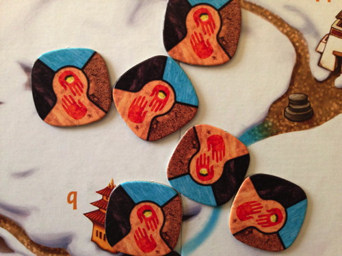 Un regret ? Oui le thème. J’aimais bien le thème de l’Himalaya, c’est un thème peu exploité. Et la livraison de troupes fait un peu artificielle par rapport à la livraison de marchandises. Sans compter qu’incarner un Idrakys ne parle pas, pas plus que j’ai vraiment ressenti l’affrontement contre les forces du mal. Ce fléau noir parait bien lointain. Nous en sommes pour la plupart restés à parler de livraison de troupes et pas d’affrontement, j’ai même continuer à poser des Stupas !
