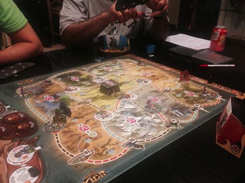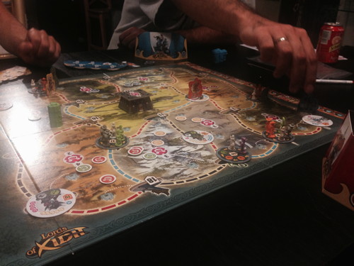 Alors qu’aux salons de Cannes et de Toulouse, je n’avais pas réussi à trouver une table libre, ou plutôt pas eu la patience d’attendre, voici qu’on me propose d’essayer Lords of Xidit en version finale. Grand fan d’Himalaya, dubitatif sur le thème (effet marketing ?) et l’intérêt de modifier le jeu, je ne peux qu’accepter le défi afin de vérifier si mon a priori sur cette édition est fondé ou pas. Et puis, ça doit bien faire 5 ans que je n’ai pas ouvert ma vieille boite Tilsit, alors voyons si je suis rouillé, d’autant qu’à table au moins deux joueurs connaissent bien Himalaya et que nous n’y avons jamais joué ensemble.