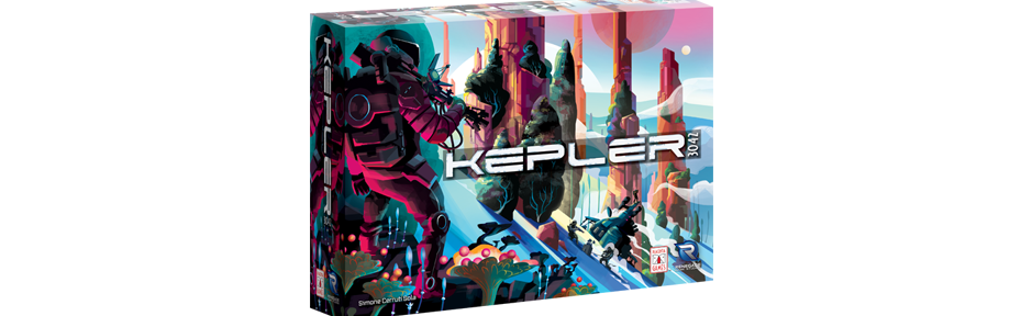 Kepler 3042 est un jeu de Simone Cerruti Sola sorti sur kickstarter en 2016 via Placentia Games (l’éditeur de Bretagne et Florenza). Le jeu va connaître une nouvelle édition, cette fois sous l’égide des braves de Renegade studios (qui décidément n’ont de cesse de faire parler d’eux). Les illustrations vont passer d’un style BD un peu old school à un mode un peu plus psychédélique sous le pinceau de Kwanchai Moriya que l’on a déjà vu à l’oeuvre dans Fuse ou Flip ships.