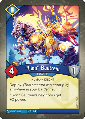 Au menu des menus changements, le statut Assommé et les +1 force deviennent des jetons plutôt que de rester des cartes ; il faut dire qu’ils seront en nombre, indiquant certainement que ces jetons seront largement utilisés par les nouvelles cartes !). Ensuite, quelques nouveaux mots-clef font leur apparition, notamment Alpha et Oméga. Une carte Alpha doit être jouée en début de phase d’action, et une carte Oméga conclura toujours une phase d’action : simple et efficace. Mais il y en a plus que ça, par exemple Déploiement, qui permettra à une unité de se glisser n’importe où dans votre ligne de front lors de son arrivée en jeu. De quoi renouveler quelque peu les possibilités tactiques des maisons.
