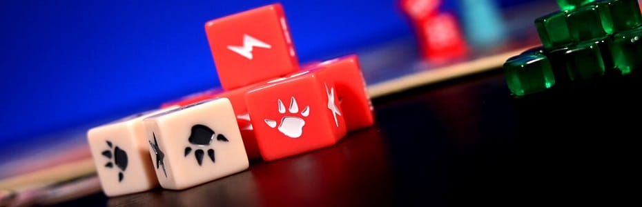 Pourtant, on a beau jouer sur une légère asymétrie des bestioles, des buzz, des dés supplémentaires, on reste à ras de terre. On voit bien que des effets comme le cube d’énergie gratuit et la baisse des coûts d’achat de cartes sont là pour dynamiser la partie, mais cela ne suffit pas. Des cartes offrant des avancées supplémentaires des pions, selon leur arrivée au marché, peuvent ralentir le rythme en mode j’avance, je recule. Le tir à la corde n’a pas de réelle empreinte. On peut essayer de freiner la progression de son adversaire, mais s’il est bien engagé de son côté, c’est surtout une course de vitesse qui va démarrer pour arriver le premier sur la dernière case. On peut aussi tenter la stratégie baston maximale, à l’ancienne, si on prend les bons personnages. Essayez Cyber Kitty contre Meka Dragon, l’un accumule les énergies, l’autre multiplie les baffes. On retrouve alors la fougue du combat.