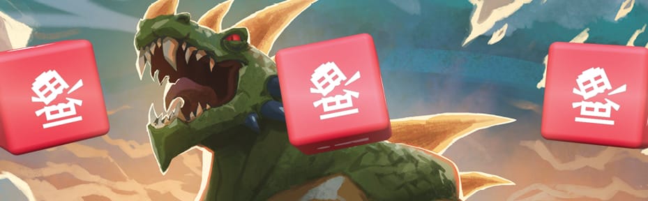 Désormais, les cartes Énergie viennent sur une rivière de trois emplacements au-dessus du plateau (avec une petite ristourne sur le prix de la dernière carte). Et oui, il y a un plateau, et ce dernier est assez différent de ce que KoT propose habituellement : nous aurons désormais deux pistes, Gloire et Destruction, avec chacune un pion dessus que les protagonistes tâcheront d’amener de leur côté du plateau dans un jeu de tir à la corde. Il vous faudra trois icônes Gloire ou trois icônes Destruction sur vos dés pour que le pion éponyme commence à se déplacer dans votre sens. Après quoi, tous les symboles additionnels permettent de bouger d’une case de plus. Si vous parvenez à tirer les deux pions sur la zone de la victoire “sous les projecteurs”, vous l’emportez. Mais vous pouvez aussi gagner en attirant un seul pion tout au fond de la piste. Vous avez pu voir Gigazaur, son pouvoir (activable avec deux icones !) permettra de tirer l’un des deux pions d’une case, pour accélérer potentiellement la victoire sous les projecteurs.