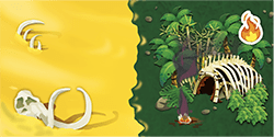 Du coup, il était impératif, pour intégrer cette extension, de pouvoir retravailler complètement la distribution des tuiles. Et changer d’univers est devenu une évidence. En plus la préhistoire, c’est fun. Dans la nouvelle distribution des terrains, on va avoir :