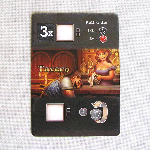 Deuxième point négatif le reste du matos est vraiment pas très beau et pas de top qualité…. Mais bon passons au jeu en lui même, et moi je l’ai trouvé hyper répétitf, vraiment trop basé sur la chance (ok on joue avec des dés, mais la on n’a voulu en faitre un jeu un peu plus complexe qu’un Pickomino….), au final sans saveur pour moi.