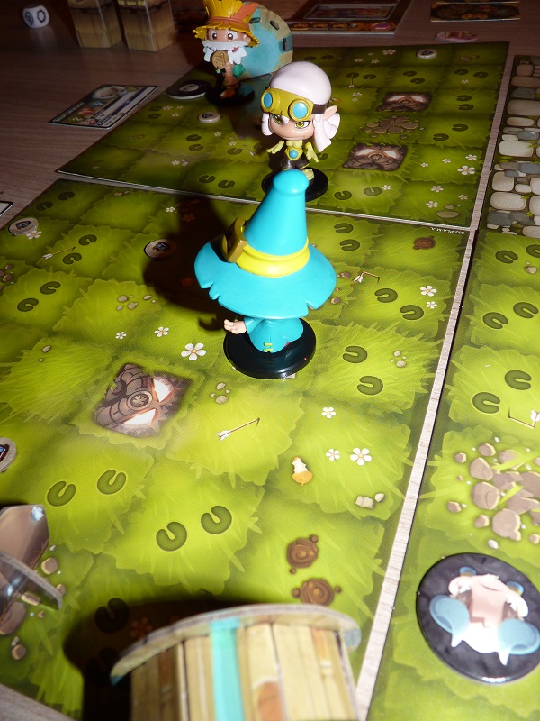 Puis, par initiative décroissante, on place une tuile correspondant au type de monstres avec lesquels on aura décidé de jouer (tofus, bouftous, ou les deux), ainsi que des filons de minerai, des arbres, et autres joyeusetés. Il n’y a pas à dire, décidément le matériel donne envie de se lancer dans l’aventure !