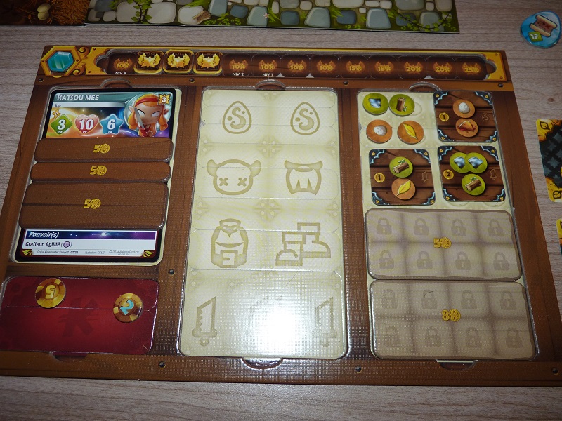 L’ensemble est bien pensé et très fonctionnel, d’autant plus que des caches permettent de dissimuler les capacités non débloquées, ainsi que les sacs d’inventaire indisponibles. On regrettera simplement une découpe perfectible lors du premier retrait de ces caches, et une grande inconnue sur ceux qu’il faut garder et utiliser en jeu, et ceux qui sont censés finir à la poubelle.