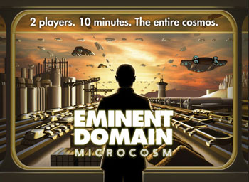Oui les KS envoient du gros, mais parfois, ils envoient aussi du tout petit. Et c’est bien. Pour ceux qui s’intéressent à Eminent Domain, une campagne Kickstarter a débuté pour une version stand-alone spécial 2 joueurs plus light et plus rapide (10 minutes !) : « Eminent Domain Microcosm » que ça s’appelle. Une version imprimable est disponible pour essai. Sounds fun ! Il reste que quelques jours, et c’est déjà über funded.