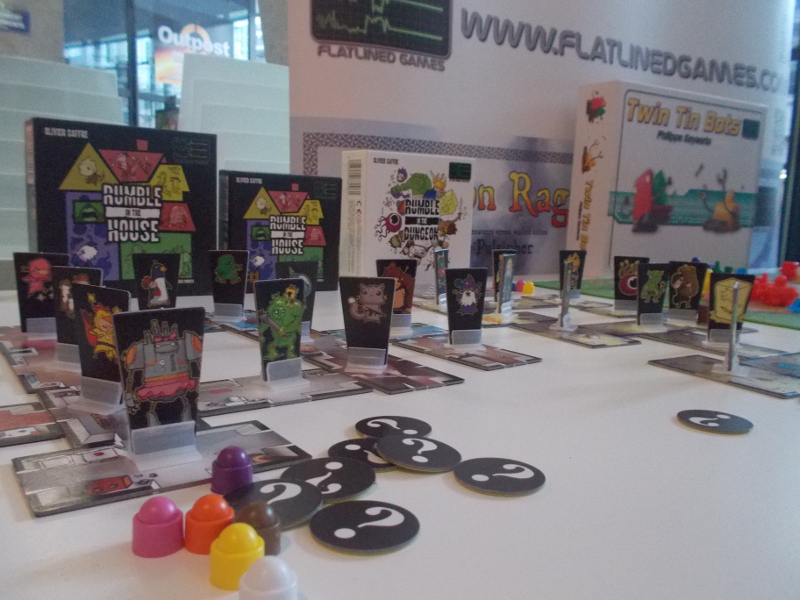 Robin était bien sûr mis en vedette (voir mon article pour plus de détails), en tant que sortie d’Essen, mais on n’oubliait pas les autres produits phares de la gamme, Rumble in the House/Dungeon, ainsi que Twin Tin Bots.
