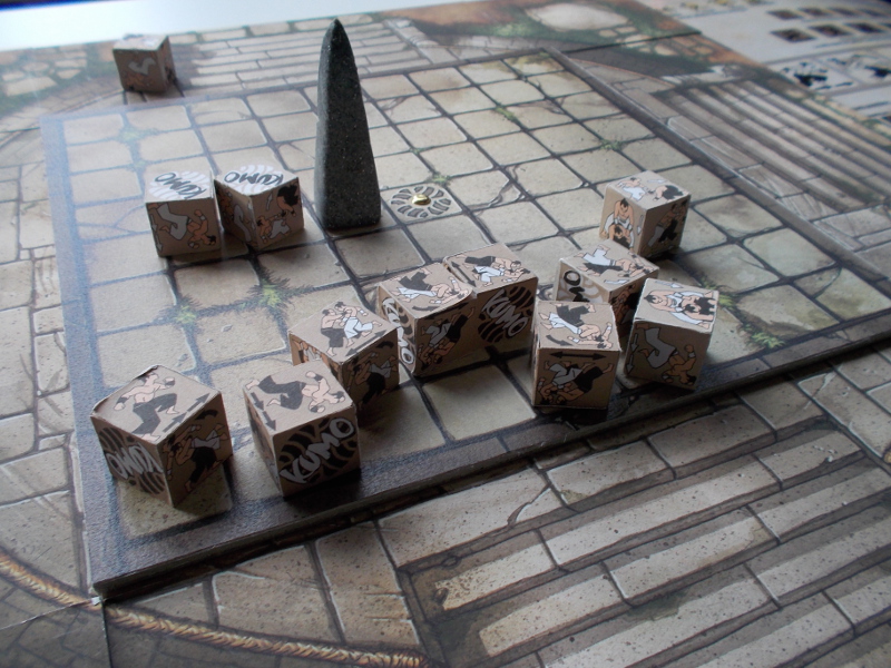 De plus, les autres joueurs ne sont pas inactifs, ils doivent observer le duel, et le premier qui s’aperçoit que les duellistes roulent un beurk en même temps, crie « Mate ! » et met fin au duel, tout en s’appropriant un des sets de dés.
